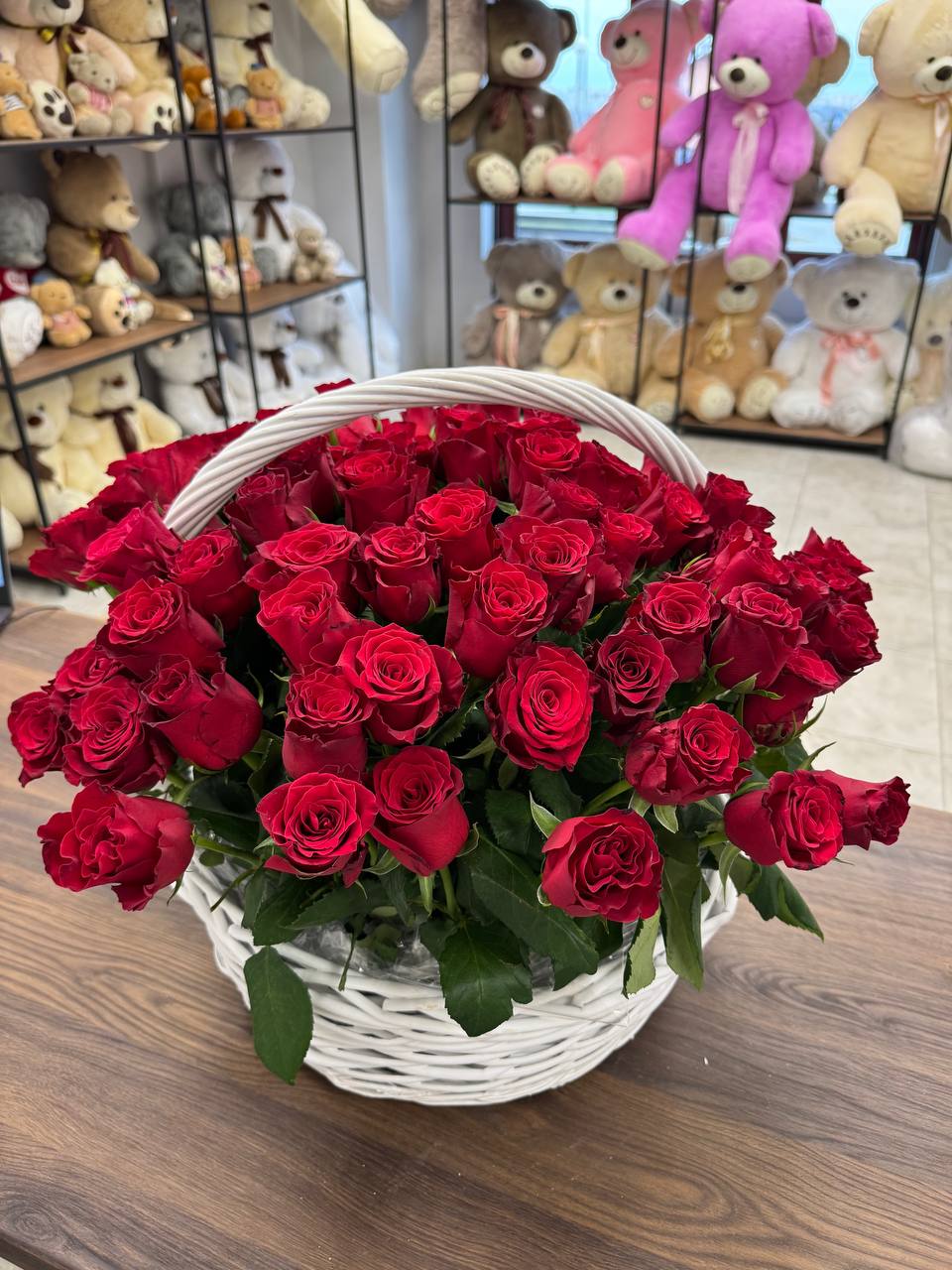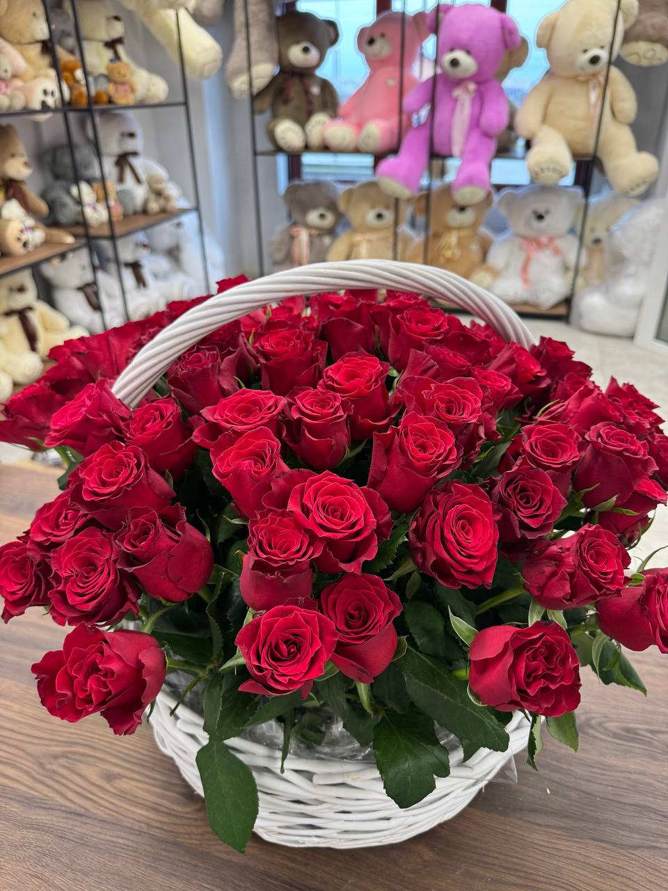 Корзина с красными розами 101 шт