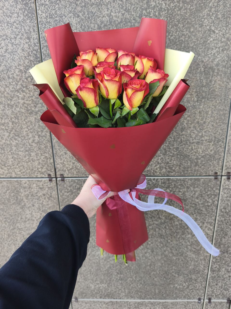 ΠΠ·ΡΡΠΊΠ°Π½Π½ΡΠΉ Π±ΡΠΊΠ΅Ρ ΠΈΠ· 11 ΠΏΡΠ΅ΠΌΠΈΠ°Π»ΡΠ½ΡΡ ΠΈΠΌΠΏΠΎΡΡΠ½ΡΡ ΡΠΎΠ· Π½Π° Π²ΡΡΠΎΠΊΠΎΠΌ, ΡΠ»Π΅Π³Π°Π½ΡΠ½ΠΎΠΌ ΡΡΠ΅Π±Π»Π΅ (60 ΡΠΌ). ΠΠ»Π°ΡΡΠΈΡΠ΅ΡΠΊΠΈΠΉ ΠΈ Π²ΡΠ΅Π³Π΄Π° ΡΠΌΠ΅ΡΡΠ½ΡΠΉ ΠΊΠΎΠΌΠΏΠ»ΠΈΠΌΠ΅Π½Ρ, ΠΊΠΎΡΠΎΡΡΠΉ Π³ΠΎΠ²ΠΎΡΠΈΡ ΠΎ Π²Π°ΡΠ΅ΠΌ Π±Π΅Π·ΡΠΏΡΠ΅ΡΠ½ΠΎΠΌ Π²ΠΊΡΡΠ΅ ΠΈ ΠΈΡΠΊΡΠ΅Π½Π½ΠΈΡ ΡΡΠ²ΡΡΠ²Π°Ρ .