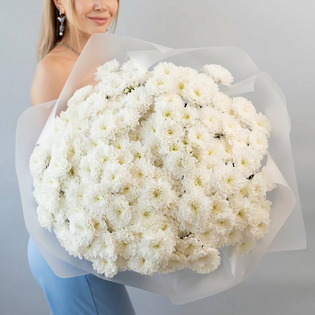 Роскошный монобукет из 25 веток кустовой хризантемы. Настоящее цветочное облако, созданное, чтобы произвести незабываемое впечатление. Невероятно стойкий и пышный подарок для самого важного повода.