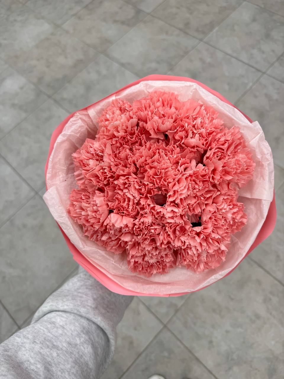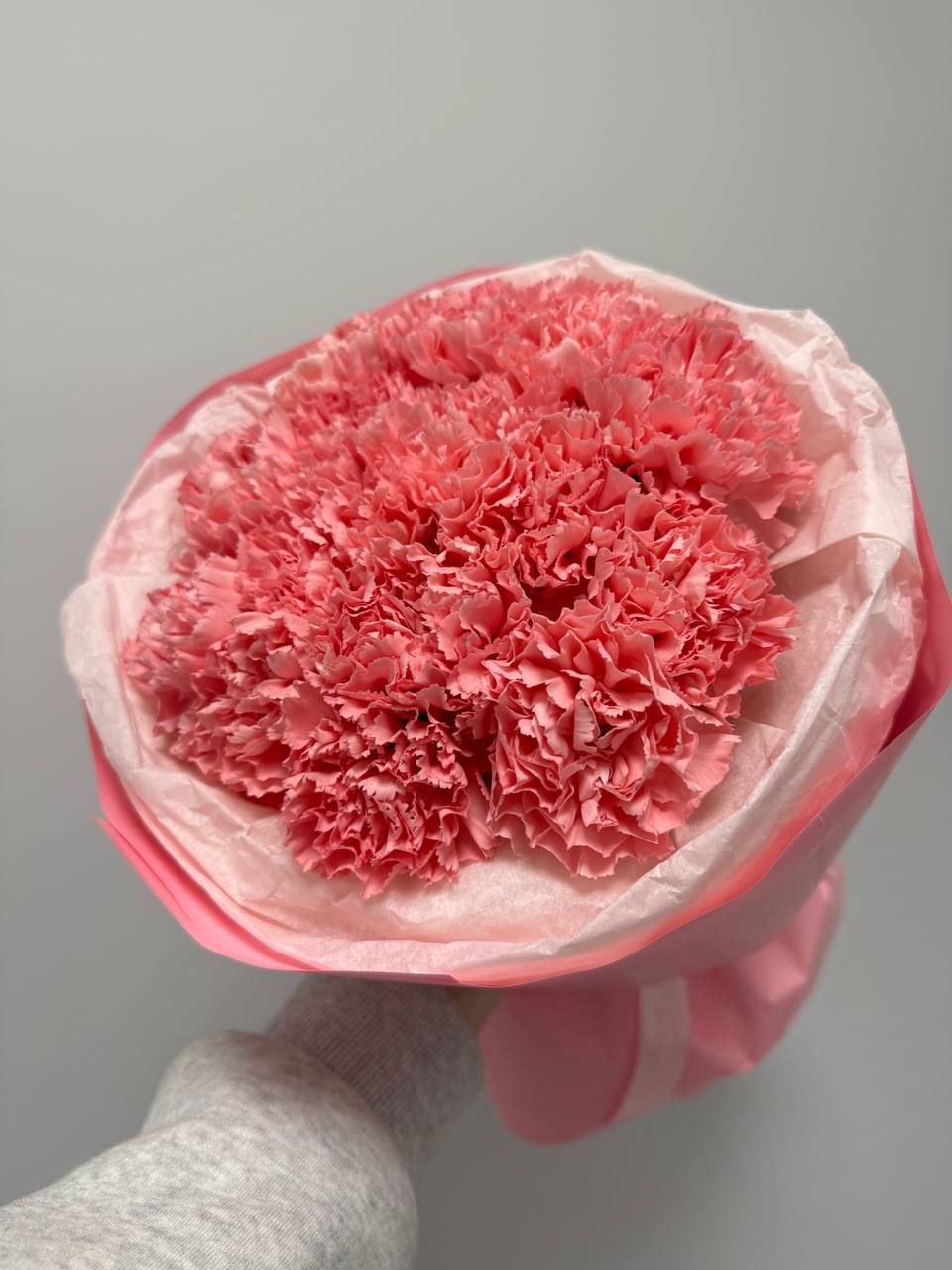 Букет из розовых диантусов в упаковке